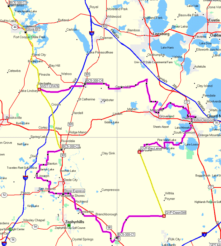 The three of us got to the control just as the others were entering the store. Then the usual: rest room, Gatorade, stretching and chatting with the group. Here we decided that no matter what we would finish this ride together. Then we were off for the final leg, which had bit of an east/south staircase shape and became hillier toward Clermont.