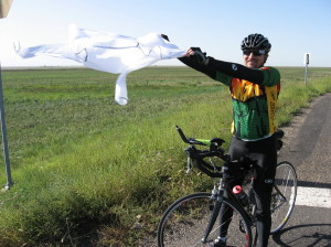 The wind was directly behind us today and was so strong that at 28 mph there were many times when the apparent wind was dead calm. There were also times at those speeds when a gust pushed on my back and actually accelerated me briefly.