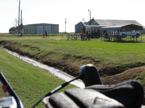 Handlebar view of the second SAG stop at a rice mill near Dewitt, AR (at 56 miles) |