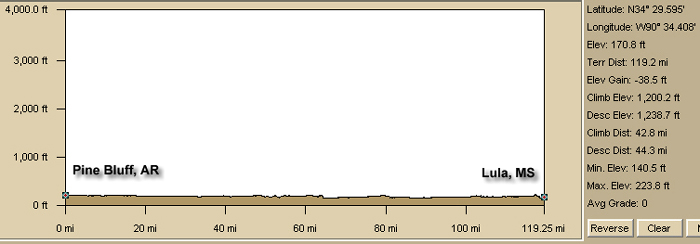 In cotton! (8 miles NE of Elaine, AR; at 105 miles) |