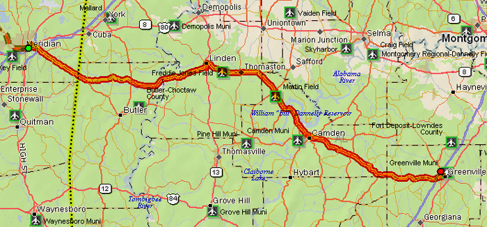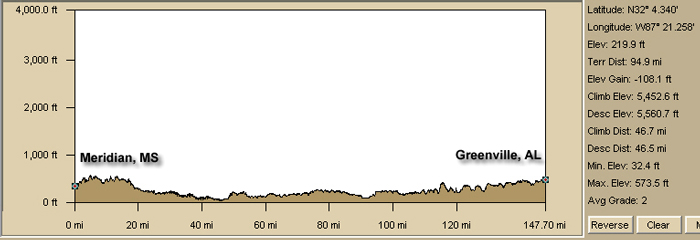 To: Greenville, AL; 145 miles official (I rode 149 miles)