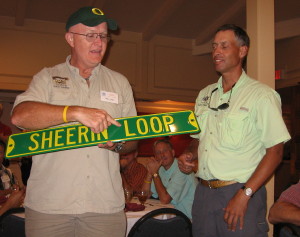 Riders with more than 20000 PAC Tour miles get a street sign with their name mounted to the side of the support vehicles. Tonight Steve was one of the honored at our banquet.