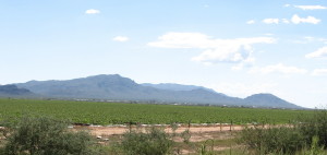 Rain showers about 20 miles into Arizona. Much of the rain evaporates before reaching the ground | Desert agriculture. Gary caught me just after I stopped to take this picture at mile 95. We rode to the finish together again today. |