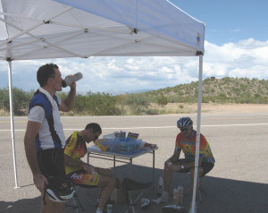 Tomorrow should be cooler with lots more climbing. It was advertised to have 7000 ft of climbing, but the route sheet says its 8500 ft. Hmmm ... it could be a tough day.