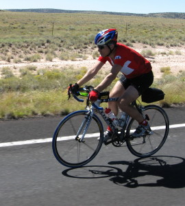 We left Winslow under sunny skies and just cold enough for a light jacket, but by the first SAG stop most jackets were off. Although I was among the first few there, I just wanted to ride a moderate to light pace today due to the very long day tomorrow. The forecast was for strong headwinds from the S to SW, so I left the SAG quickly while the winds were still relatively light. Walter had similar intentions so we left together.