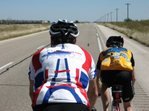 The three of us gradually increased the pace to 26 mph in the building tailwind. Then Eamonn got a flat tire caused by a small wire. It took about 10 minutes to fix as it was difficult to work the wire out of the tread. I was a little surprised that we were far enough ahead that no other riders caught up to us at that point.