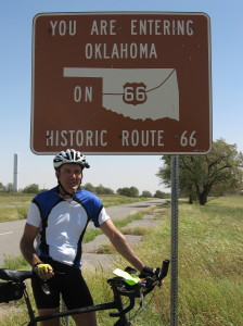 I rolled out with Eamonn, Dennis, Butch, Paul and several others. At about 5 miles Paul had a flat and I stopped to help as everyone else rode on. I diagnosed the cause as a snakebite puncture; the result of running over something with such force that the inner tube gets pinched between the tire and rim. Its called a snakebite because it makes two holes in the tube. Once underway we rode side-by-side on the old Route 66 and chatted.