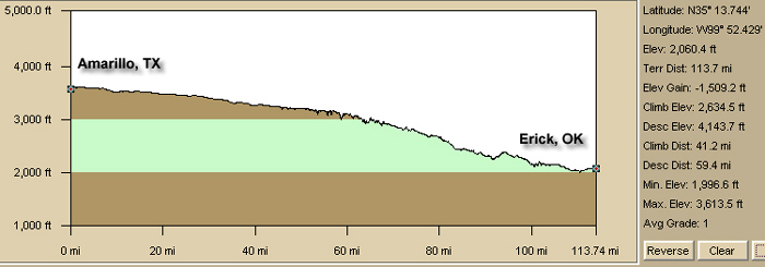 Today's profile was gently rolling with a gradual descending trend all the way to Erick, OK |