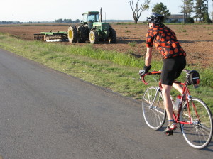 Walter, Eamonn, Paul and I rode virtually the whole day together except for the first few miles riding out of town. On a flat and windy day like today, it is especially important to have a few good riding partners. For the last 15 miles we were into a really brutal 20-25 mph headwind as we at times only managed 14 mph. Riding in a pace line with an apparent wind of 20 mph saves the group about 20% of their energy (our apparent wind was about 35 mph). Only the leading rider has the full workload and taking turns at the front assures that everyone gets a break.