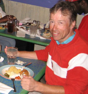 Me working on my fourth plate of food, with Eamonn. | Walter also puts away the carbohydrates. |