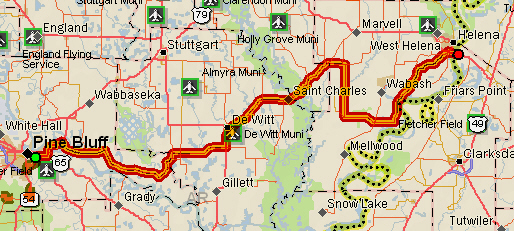In cotton! (8 miles NE of Elaine, AR; at 105 miles) |