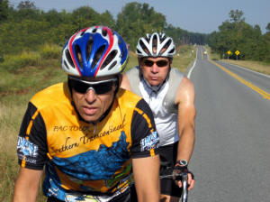 This morning I awoke with aching legs so I figured it would be a disappointingly slow day. To my surprise, as I rolled along in a large paceline to the first SAG stop, I started to feel stronger. The pain was still there, but the power that deserted me for the last two days seemed to be coming back.