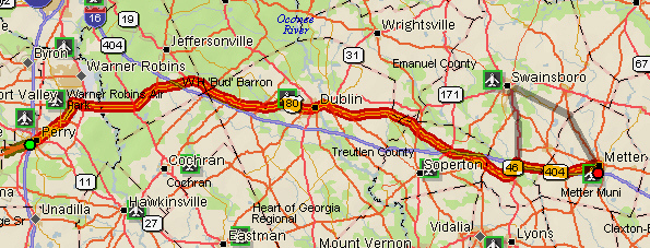 To: Metter, GA; 114 miles (138 miles with route sheet error)